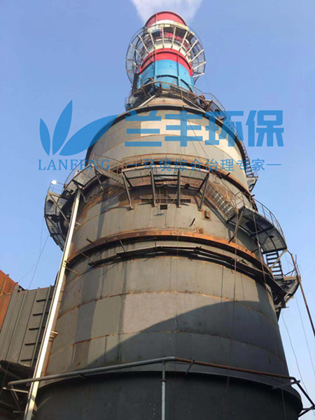 图为试运行中的脱硫除尘一体塔