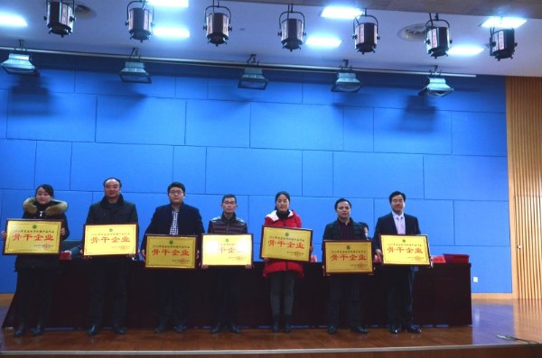 图为公司品牌建设部经理王雅倩(右三)领取“骨干企业”奖牌
